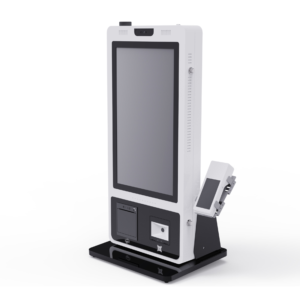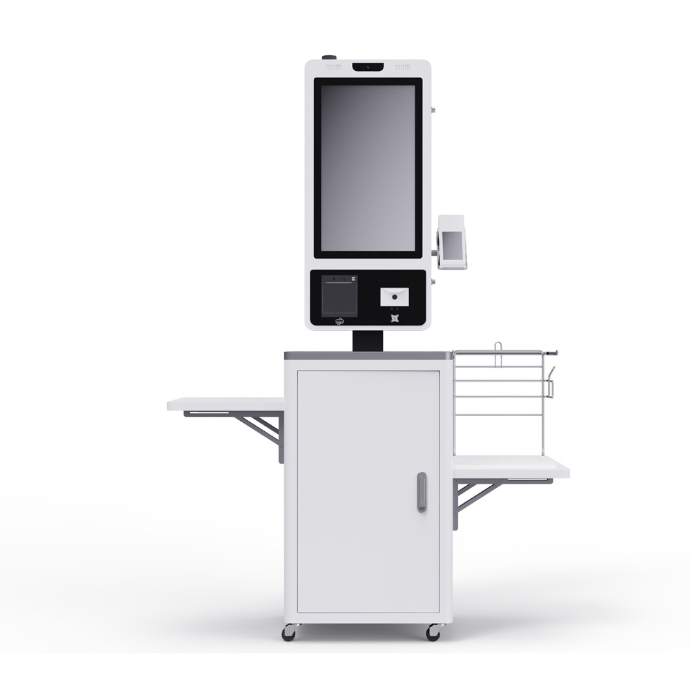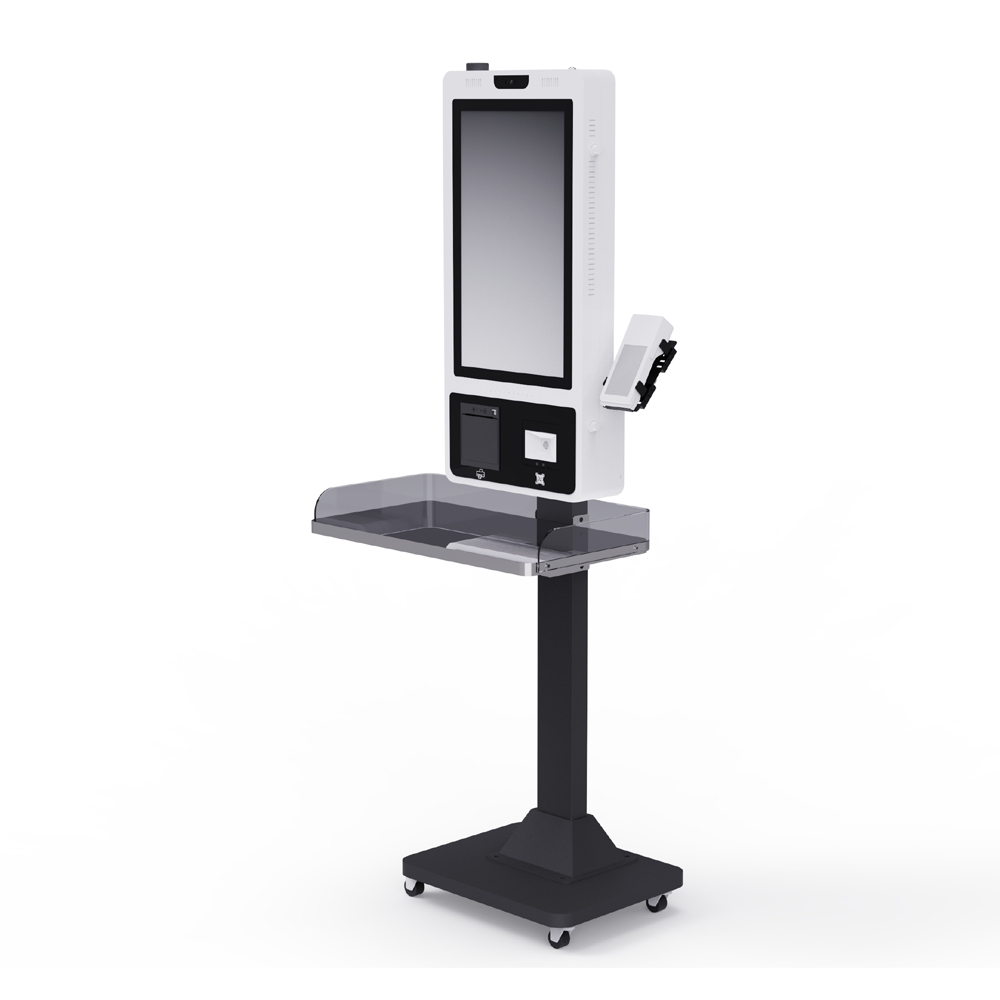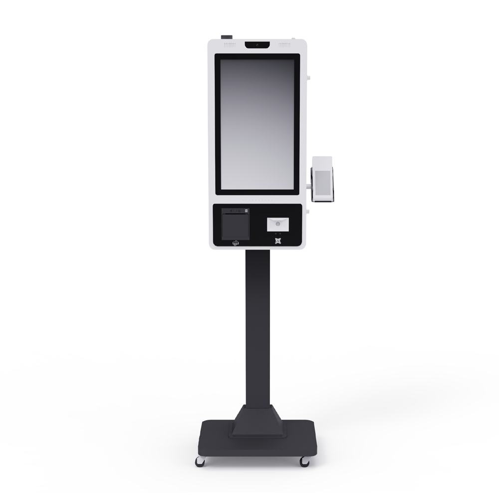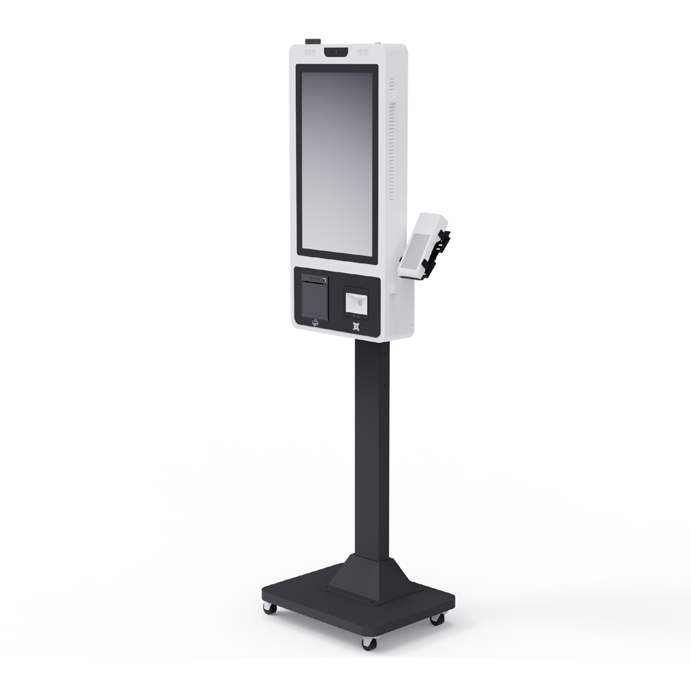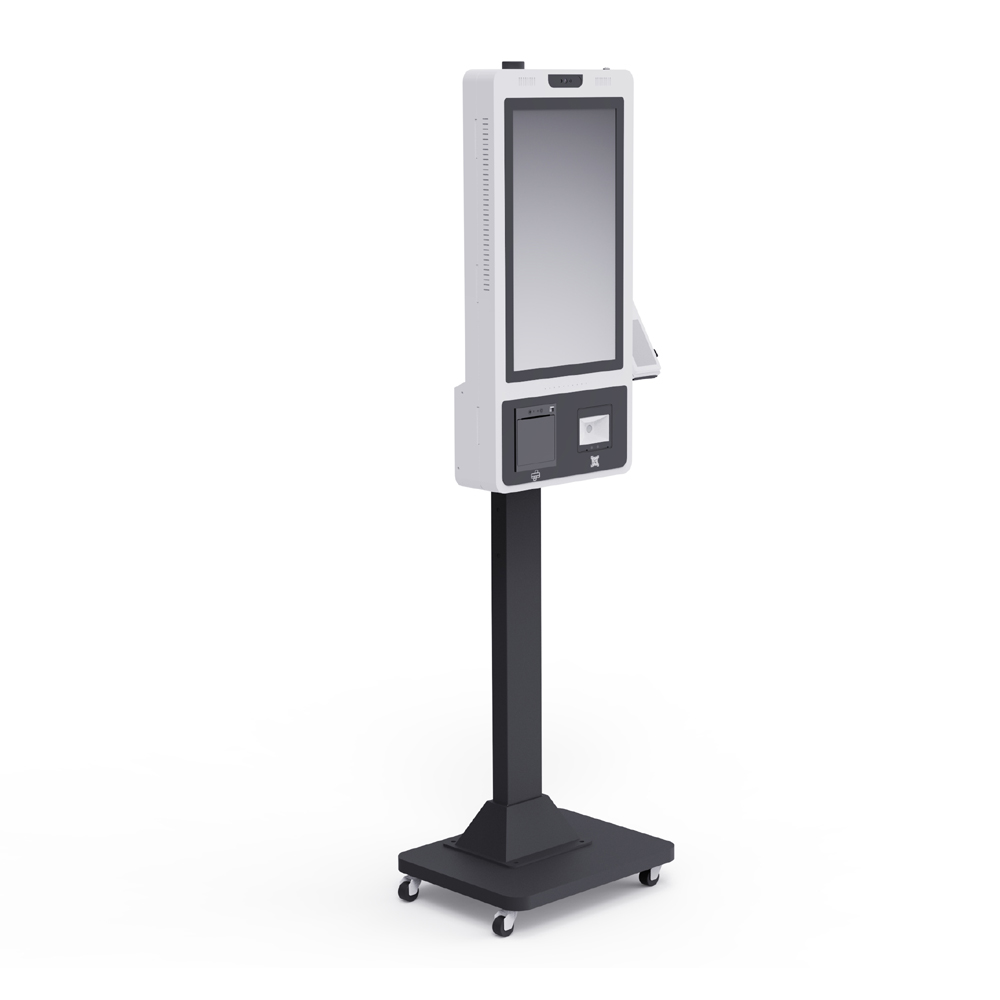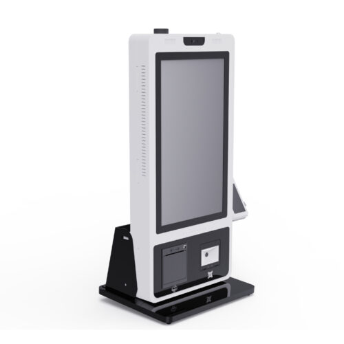 Kiosk with a floor stand is one of the most popular and versatile designs. Its stable structure and high visibility make it suitable for supermarkets, airports, cinemas, hotels, and government service centers. The floor-standing design allows flexible placement and supports various screen sizes and configurations.