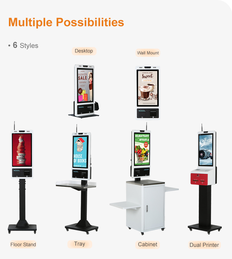 Self-service kiosks are widely used to improve service efficiency, reduce labor costs, and enhance customer experience. To meet different application needs and installation environments, we provide 6 styles of kiosk solutions, designed for flexibility, stability, and long-term commercial use.